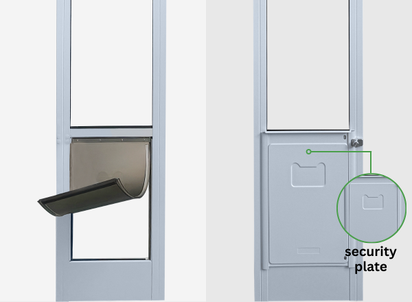 * Security Plate — Removable plate locks the dog door for added security when you’re away.