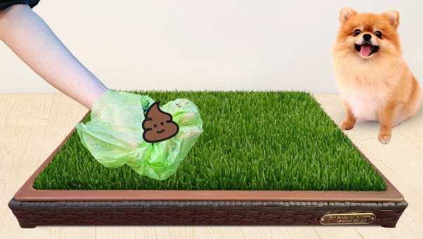 In most cases, the smell of the real grass will naturally attract your pup to go. However, if you need additional help, wipe down the scenting hydrant (not included) with a paper towel coated in your dog’s urine. Then place it on the Porch Potty MINI. This will mark the Porch Potty as your dog’s spot to go.If you need more tips and tricks for puppy potty training, Porch Potty comes with a FREE training guide. We also have tons of great expert advice over on our blog!
