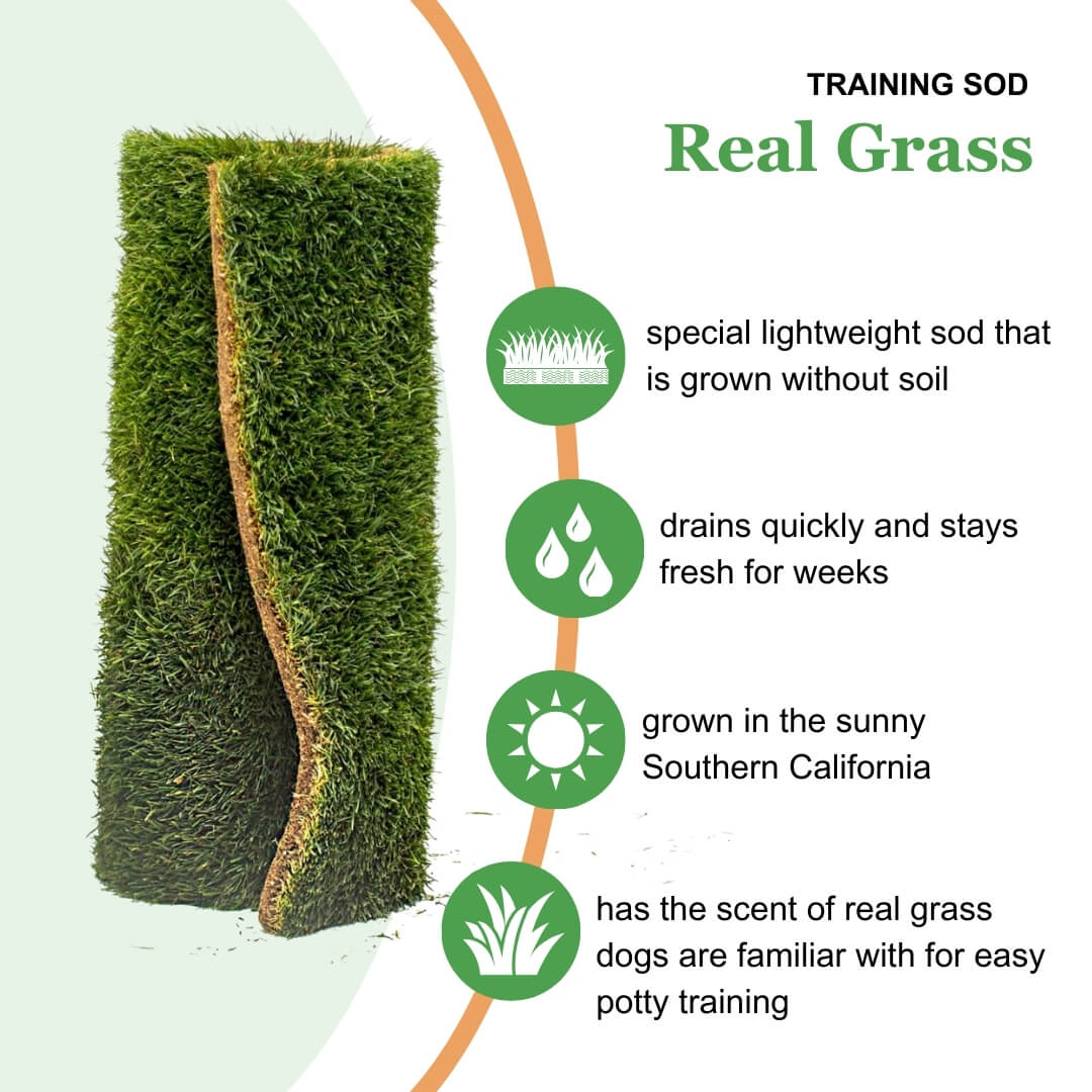 Porch Potty MINI comes with a watering tray and fresh sod, which should be replaced every 1 to 2 months.